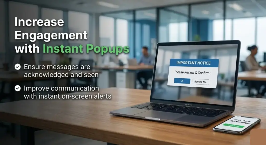 Deliver instant popup alerts directly to users’ desktop screens so important messages are seen immediately.