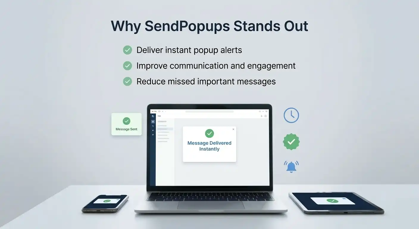 Unlike emails or chat messages, SendPopups delivers high-visibility desktop alerts that users cannot miss—ensuring immediate attention and faster response.