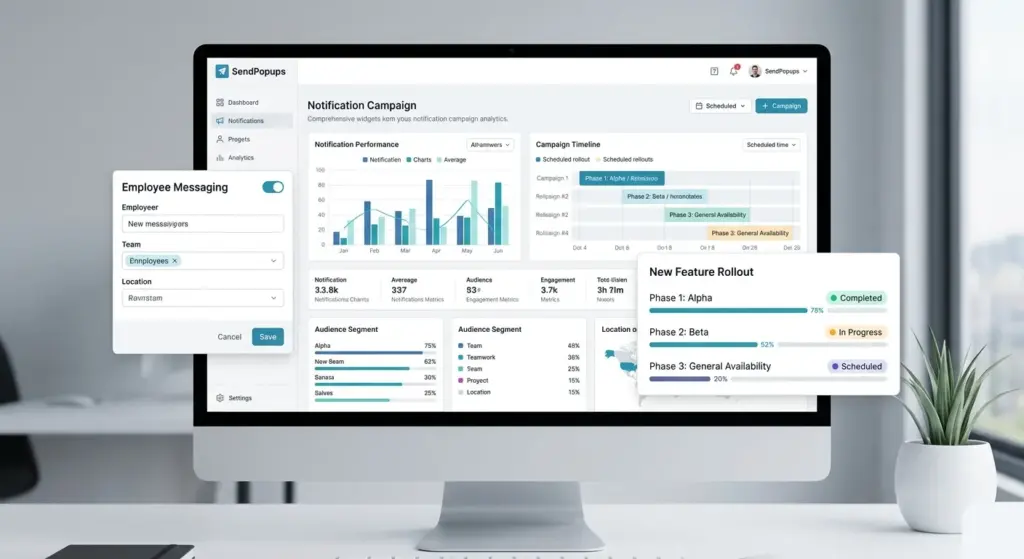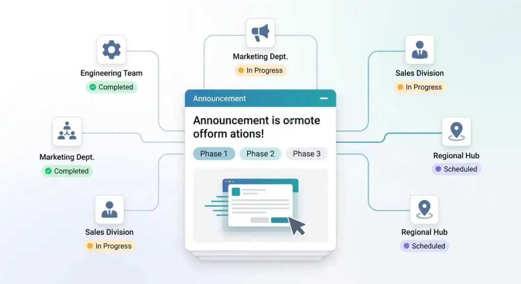 Support organizational change with faster, clearer, more visible internal communication. SendPopups helps teams explain what is changing, why it matters, who is affected, and what action is required across desktop, mobile, email, SMS, and shared screens.